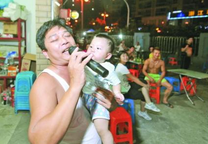 見到黃勇的時候,他穿著汗背心,正樂呵呵地逗著一個孩子玩。隨口問他“晚上唱了沒啊,都唱了啥歌啊?”對面傳來濃濃的港式普通話:“唱了唱了,Beyond的,劉德華的,都唱了。”邀他再獻唱一首,二話沒說,拿起話筒就唱開了:“今天我寒夜里看雪飄過……”