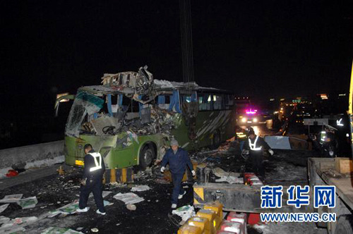 圖表:杭州機場高速兩大巴相撞造成重大傷亡 新華社發