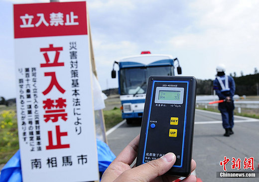 4月26日,中新社記者一行當(dāng)天抵達(dá)位于日本福島縣南相馬市原町的福島第一核電站泄露事故20公里警戒圈,盡管此處的放射線(xiàn)測(cè)量數(shù)值處于安全水平,但仍可見(jiàn)警方豎起的“禁止入內(nèi)”的告示牌。中新社記者 侯宇 攝