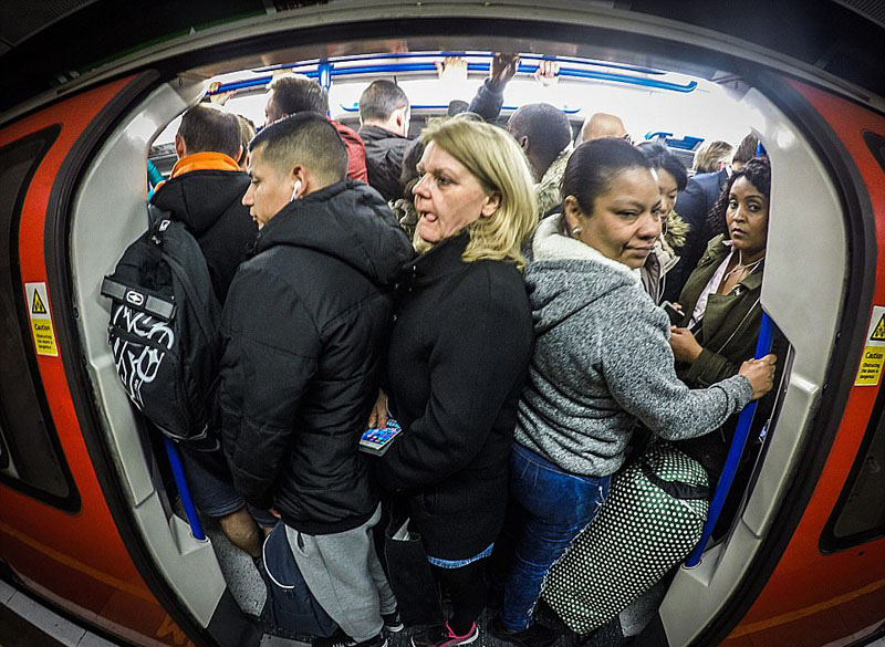 近日,英國一名攝影師拍下了早晚高峰時期倫敦地鐵里擁擠不堪、摩肩接踵的一幕,稱該場景如“地獄”般令人痛苦。