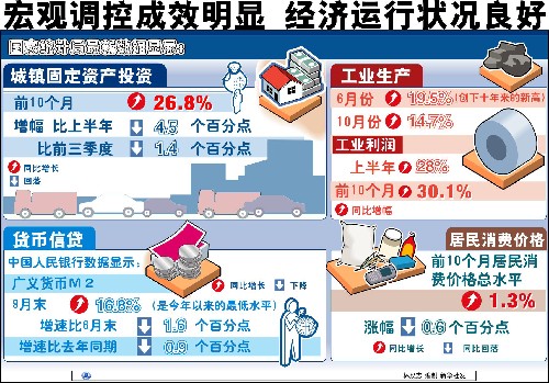 新華網(wǎng)北京11月14日電(記者 張毅) 今年以來(lái),針對(duì)中國(guó)經(jīng)濟(jì)運(yùn)行中的突出矛盾和問(wèn)題,中國(guó)政府及時(shí)采取了一系列宏觀調(diào)控政策措施,保證了國(guó)民經(jīng)濟(jì)持續(xù)平穩(wěn)快速發(fā)展,呈現(xiàn)出增長(zhǎng)較快、結(jié)構(gòu)優(yōu)化、效益提高、民生改善的良好態(tài)勢(shì)。但是當(dāng)前經(jīng)濟(jì)運(yùn)行中又出現(xiàn)了物價(jià)上漲壓力加大、節(jié)能減排形勢(shì)嚴(yán)峻等突出問(wèn)題。要解決這些問(wèn)題,必須進(jìn)一步加大和改善宏觀調(diào)控,保證國(guó)民經(jīng)濟(jì)又好又快發(fā)展。