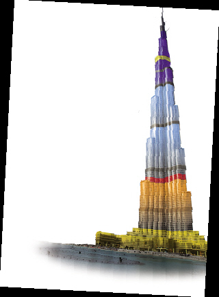 據英國《泰晤士報》1月3日報道,總高度至少超過800米、樓體169層的迪拜塔今日舉行竣工典禮,它的確切高度現在仍然是一個謎,但毫無疑問的是,這一世界最高建筑今后必將吸引世界的目光,深受債務危機丑聞困擾的迪拜政府也將借這一巨塔再次向世界證明迪拜的活力與輝煌。