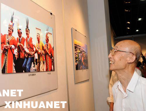 9月16日,一位南京市民在攝影展上觀賞反映臺灣風情的照片。