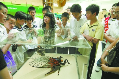 9月17日至11月12日,來自臺灣自然科學(xué)博物館的《鳴蟲特展》在福州科技館舉辦。鳴蟲是指善鳴之蟲,常見的鳴蟲有蟋蟀、蛐蛐等。鳴蟲大多依靠土壤生活,是城市自然環(huán)境保護(hù)程度的指示物種。該展通過介紹鳴蟲的發(fā)音目的、發(fā)音方式等,用鳴蟲與人類之間的密切關(guān)系來揭示環(huán)境保護(hù)、生態(tài)保護(hù)的重要性。據(jù)悉,與展覽配套的相關(guān)科普活動(dòng)也將陸續(xù)展開,如蟲蟲音樂會、觀展體驗(yàn)活動(dòng)以及專題科普講座等。圖為臺灣自然科學(xué)博物館動(dòng)物學(xué)組博士詹美鈴正在向?qū)W生們講解鳴蟲知識。(記者 吳恩兒)
