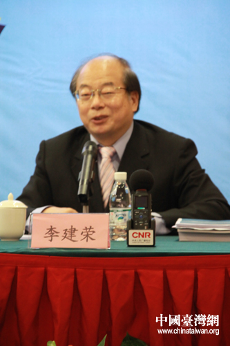 臺灣;鶗檰、中華海峽兩岸客家文經交流協會副理事長李建榮先生回答記者提問。(中國臺灣網 馮江 攝)