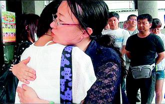 大陸領隊葉云(擁抱者右)輕擁駕駛的女兒勸慰:“你要堅強、要照顧媽媽!焙竺娴膱F員都紅了眼眶。圖片來自臺媒