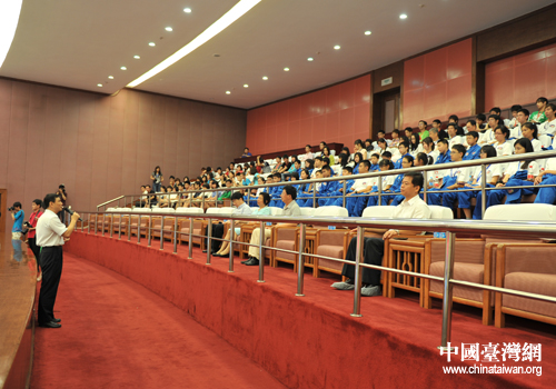 同學們在北京航天飛行控制中心聽取工作人員的講解和介紹。(中國臺灣網(wǎng) 李瑞艷 攝)