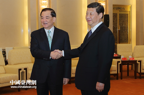2月25日上午,中共中央總書記習近平在人民大會堂會見了中國國民黨榮譽主席連戰一行。(中國臺灣網 陳佳慧 攝)