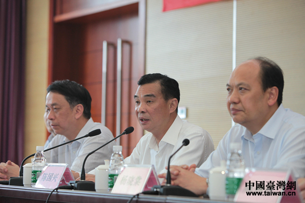廣東省人民政府臺(tái)灣事務(wù)辦公室主任陳國興在成立儀式上致辭。(中國臺(tái)灣網(wǎng)發(fā))