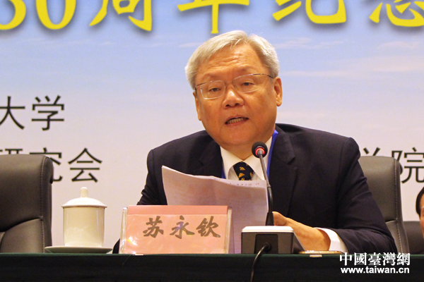 臺灣法曹協會理事長蘇永欽在開幕式上致辭。(中國臺灣網 張潔 攝)