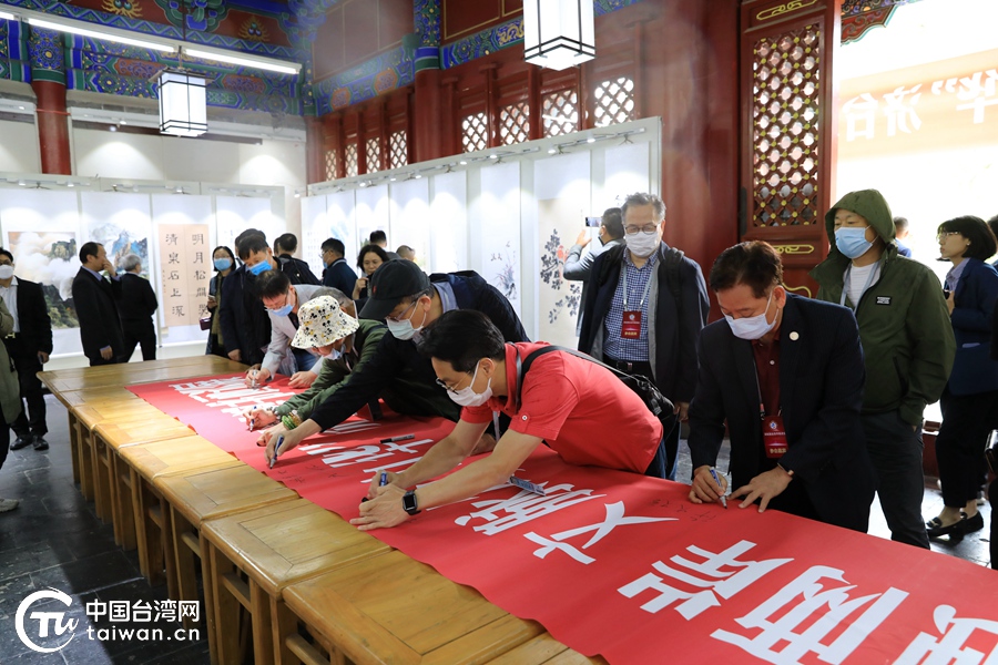 與會嘉賓在紀念橫幅上簽名留念。(中國臺灣網 尹賽楠 攝)