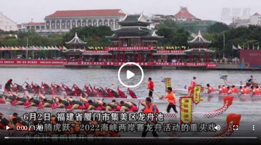 6月2日,福建省廈門市集美區(qū)龍舟池,云旗獵獵,雷鼓嘈嘈。“龍騰虎躍”2022海峽兩岸賽龍舟活動的重頭戲——龍舟比賽鳴鑼開賽!由在閩臺胞、臺商、臺青組成的17支臺胞隊(duì)伍,與24支大陸隊(duì)伍御龍逐浪,通過賽龍舟這項(xiàng)歷史悠久的中華傳統(tǒng)民俗活動,共同迎接端午佳節(jié)到來。