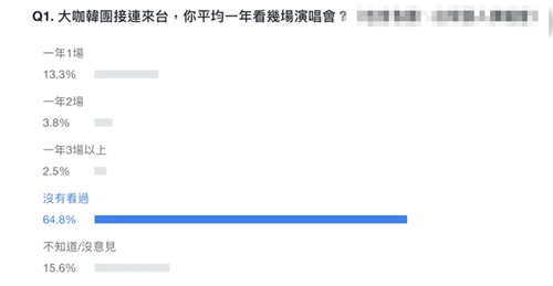 有臺灣媒體進行網絡投票調查臺灣民眾看演唱會的頻率,參與投票的3.18萬人之中,有64.8%表示沒看過。還有粉絲被媒體詢問是否因為“有錢又有閑”來看演唱會時表示,“也不是欸”,純粹是為了娛樂。