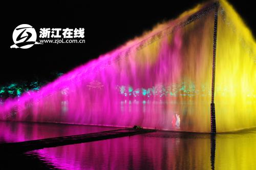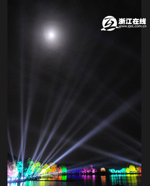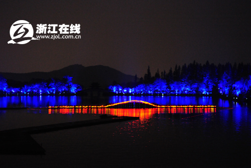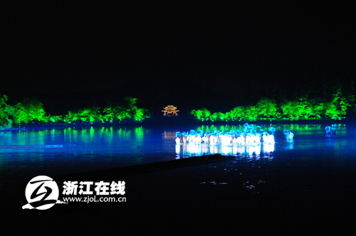今天晚上,參加由浙江省委外宣辦、省旅游局和浙江在線新聞網站舉辦的“詩畫江南——全國知名網絡媒體浙江行”采訪團就現場感受了一番“印象西湖”的美麗。