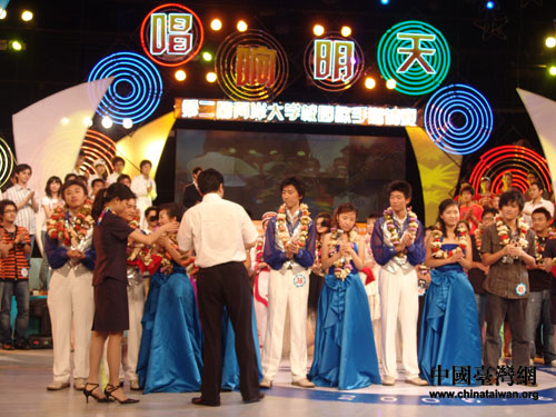 中國(guó)臺(tái)灣網(wǎng)06年8月7日廈門(mén)消息 作為此次兩岸青年聯(lián)歡節(jié)活潑而又精彩的內(nèi)容,由中華全國(guó)學(xué)生聯(lián)合會(huì)主辦,福建省學(xué)生聯(lián)合會(huì)、臺(tái)灣中華青年交流協(xié)會(huì)、廈門(mén)市學(xué)生聯(lián)合會(huì)承辦的第二屆“唱響明天”兩岸大學(xué)校園歌手邀請(qǐng)賽于8月6日晚在廈門(mén)電視臺(tái)演播室圓滿落下帷幕。
