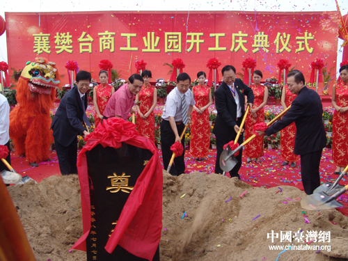 中國臺灣網7月8日襄樊消息 昨日,作為“第五屆湖北武漢臺灣周”襄樊分會場的重要活動的襄樊臺商工業園開工慶典奠基儀式舉行。中國國民黨中常委黃良華、全國臺企聯會長張漢文、臺灣工商建研會理事長顏文熙、深圳市臺協會長黃明智等嘉賓出席典禮并為工業園培土奠基。