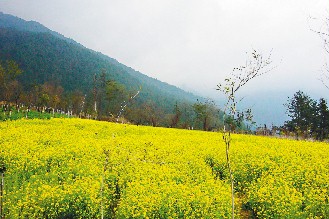 在武陵露營(yíng)區(qū)旁,油菜花田正盛開。